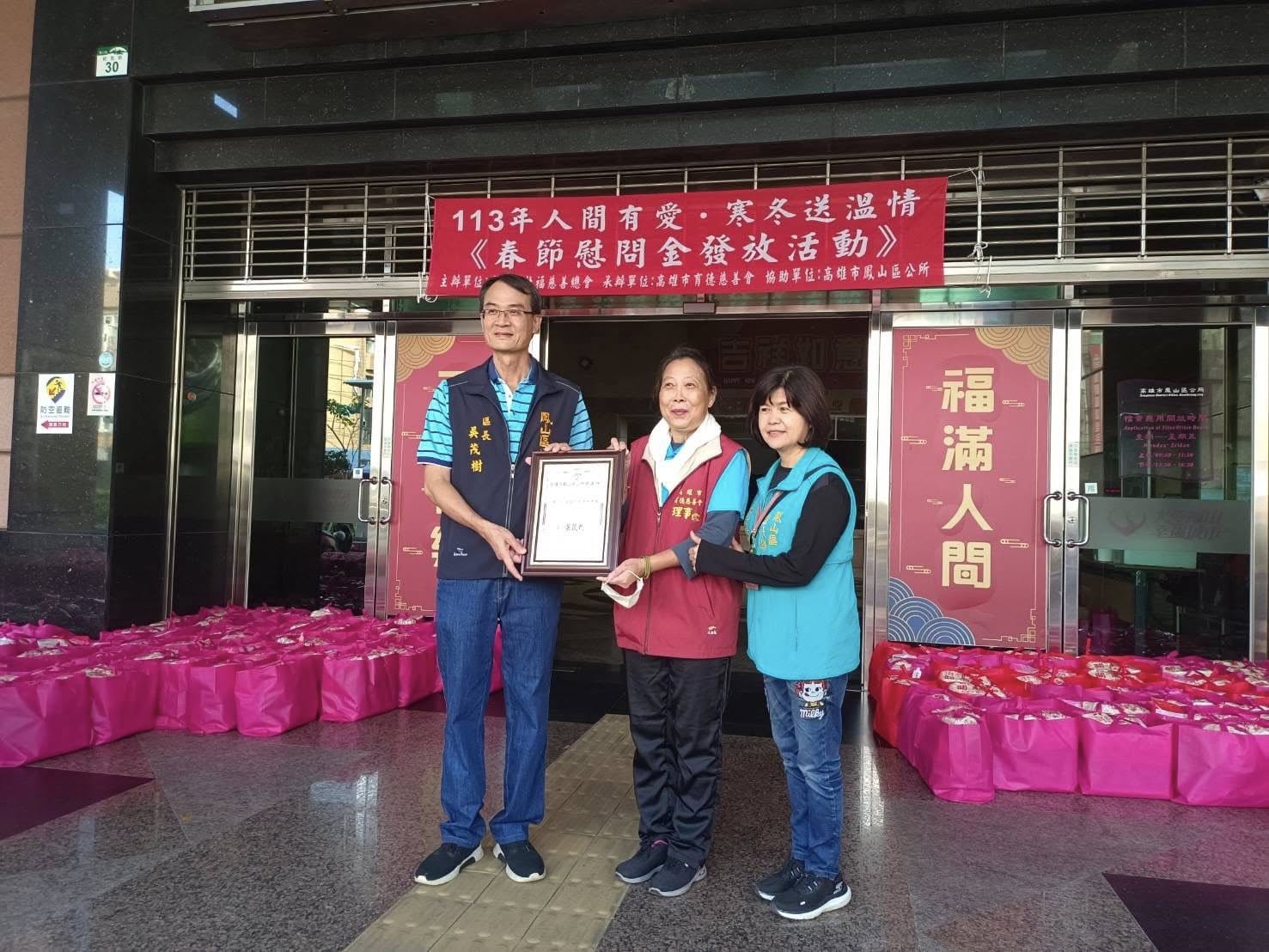 鳳山區長吳茂樹特別感謝社團法人高雄市育德慈善會,對弱勢家庭的關懷與付出,本次共有300戶家庭受惠,也期待有更多民間資源,一起響應弱勢家庭照顧服務,共同打造幸福鳳山城。